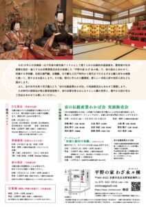 2月27日から3月22日金土日ひなまつりが開催されます!その期間中3月20日(金・祝)京都はんなりの会は邦楽演奏会を開催します。今年で第十回を迎えることが出来ました。これまで支えていただいたお客様、関係各位様に感謝を込めて演奏させていただきます。是非お越し下さいませ。